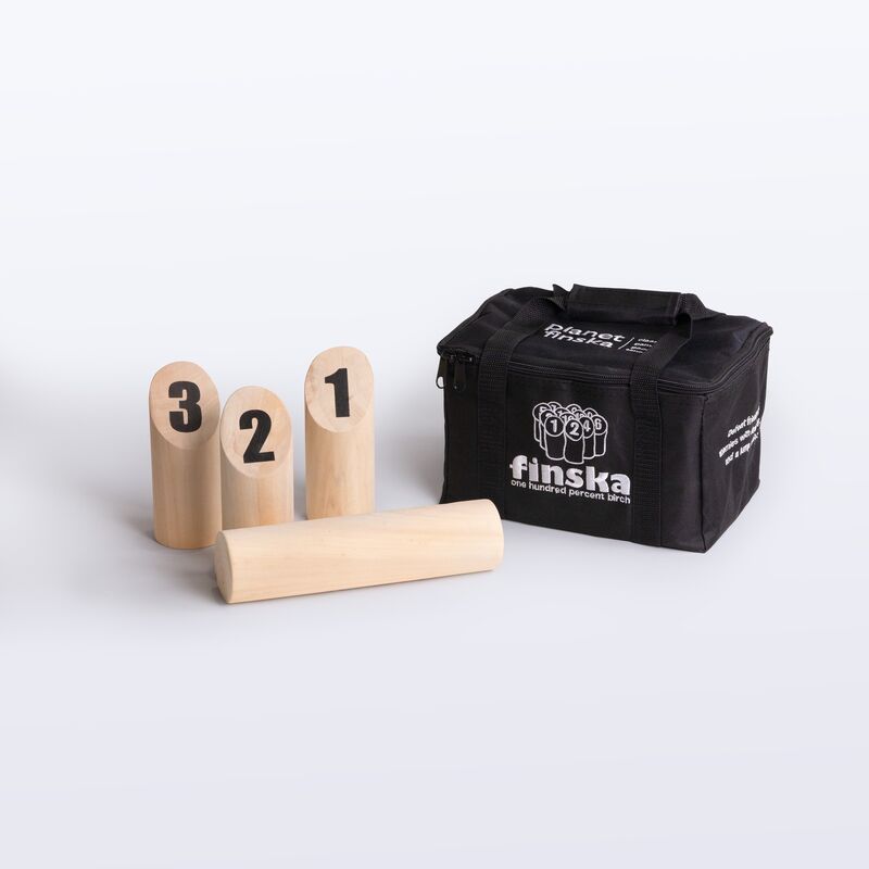 Since we introduced Finska to Australia in 2009, the game's popularity continues to go from strength to strength. Finska will provide guaranteed "funska" for all ages at your next party, barbecue or picnic. Original Finska is crafted from eco-friendly birch and comes with everything you need to become yet another Finska tragic! This set includes a durable zip up carry bag, 12 numbered pins, one Finska throwing log plus a score sheet and rule card.
