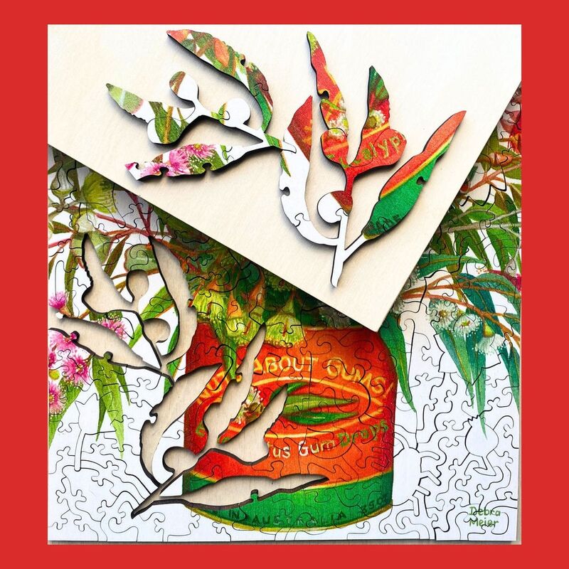 From the moment we saw this artwork, we knew that we wanted to create a puzzle from this image! It is an exact resemblance of all the beautiful and unique native plants and bushes that Australia has in their back gardens. We loved the tin that was used for the vase as it gave a cute quirkiness to the image and created some text which makes a fun build.