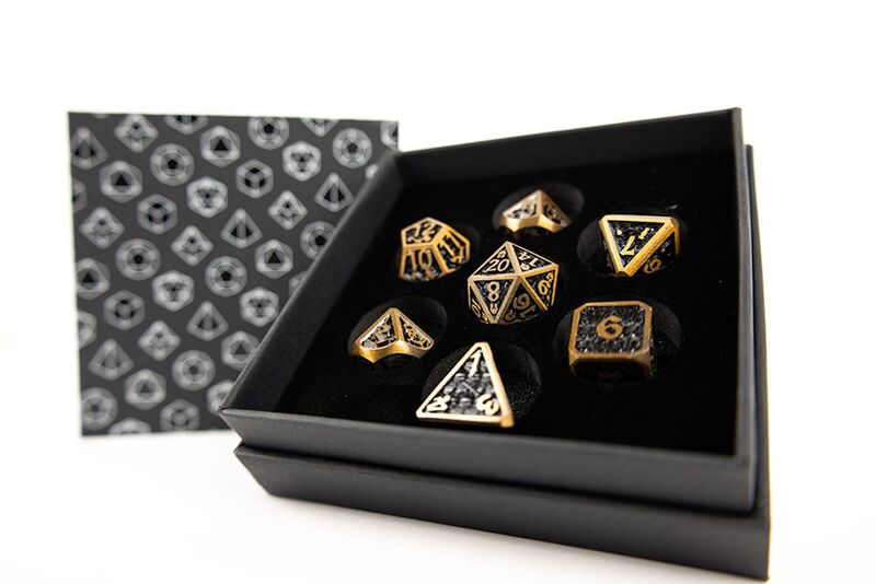 The dice comes in a giftable box with a unique design, with foam divets to keep the dice secure and safe.