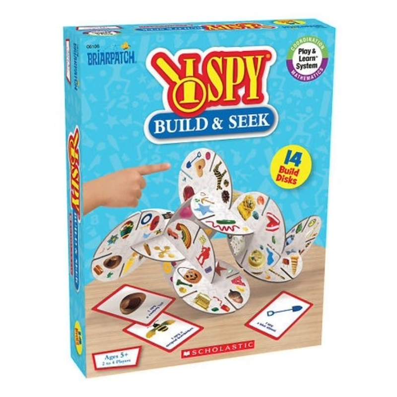 Get ready for a twist on classic seek-and-find fun! In I SPY Build & Seek, kids build a one-of-a-kind 3D tower from 14 colorful disks, where no two towers are ever the same! Then, flip a Seek Card and race to spot the hidden object on the tower. With search-and-find activities, this game builds focus, memory, and creativity while delivering endless fun for curious minds.
